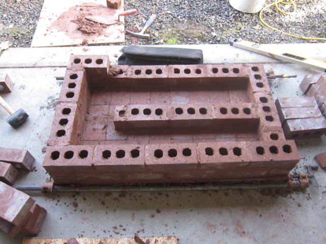 bottom channels are laid up on a layer of solids, 3 bricks wide by 5 deep (classic (fibonacci) proportions!)