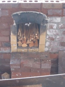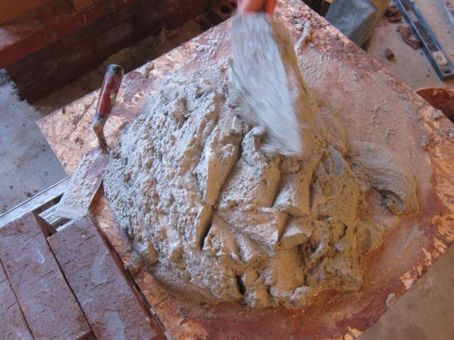 mortar: approx. 2 parts mason’s sand, 1 part clay, and a trowel or three of ash; the ash makes it buttery and easy to work — and possibly stronger