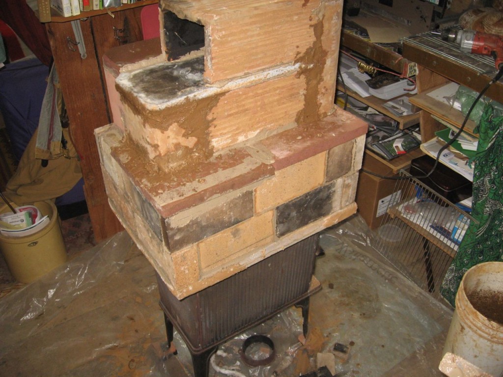 Well I’m about to embark on a similar adventure to boldly go where no stove has gone before, or so I thought until I found this thread. Hours of staring at the stove pipe and wishing I could reclaim the lost heat, combined with a love of the mysterious masonry heater that filled a Swiss mountain chalet in the days of my youth are compelling me forward. So I have a large cast iron jotul about twice the size of the one above, and a stack of bricks and some Eco therm insulation blocks, plenty of clay and the winter coming on…… I’ll let you know how it goes….