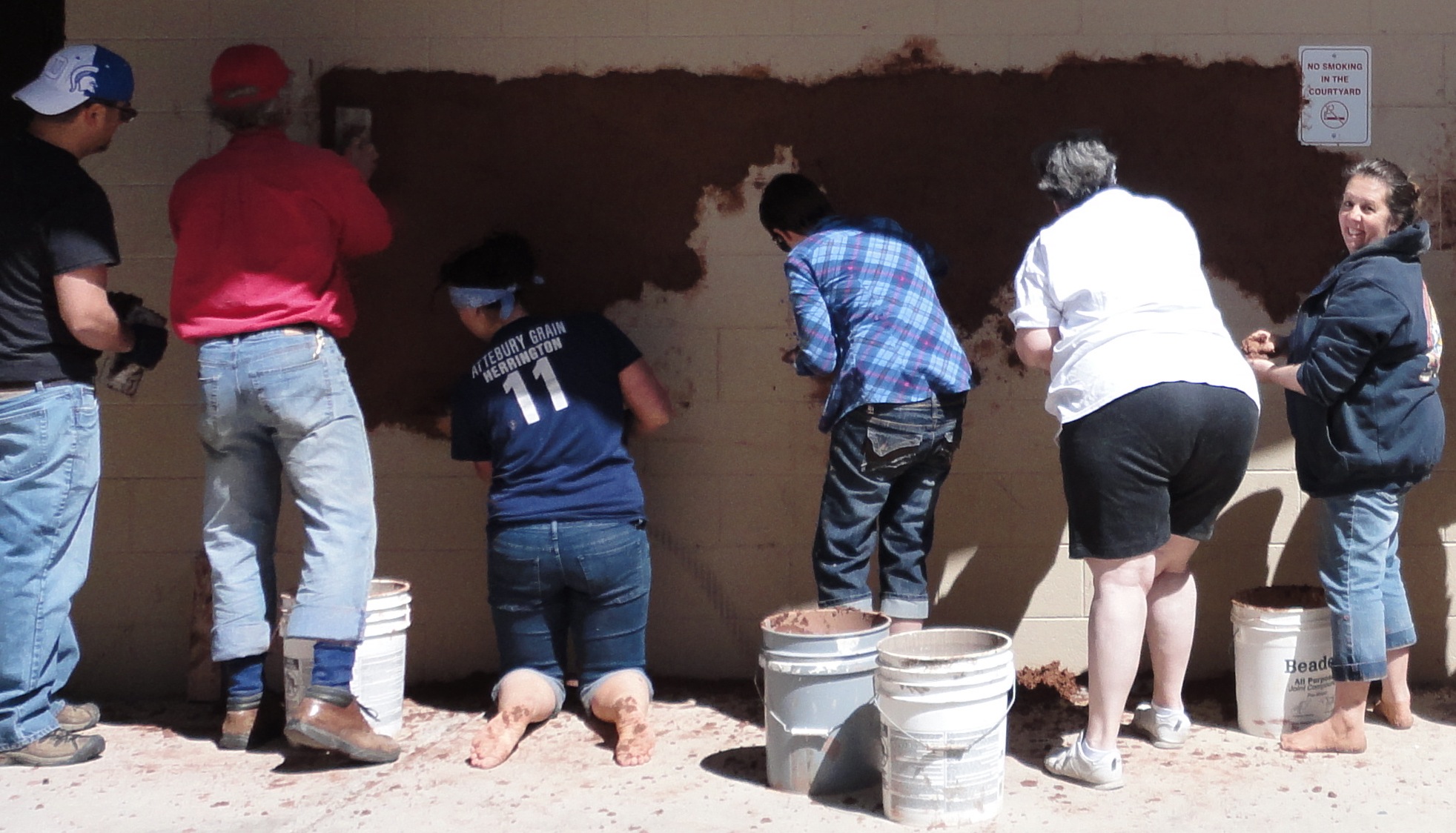 CO mud mural May 21, 2012 CSU students on the first of a two day mural workshop in which we brought life (and earth!) into a dead concrete courtyard space.