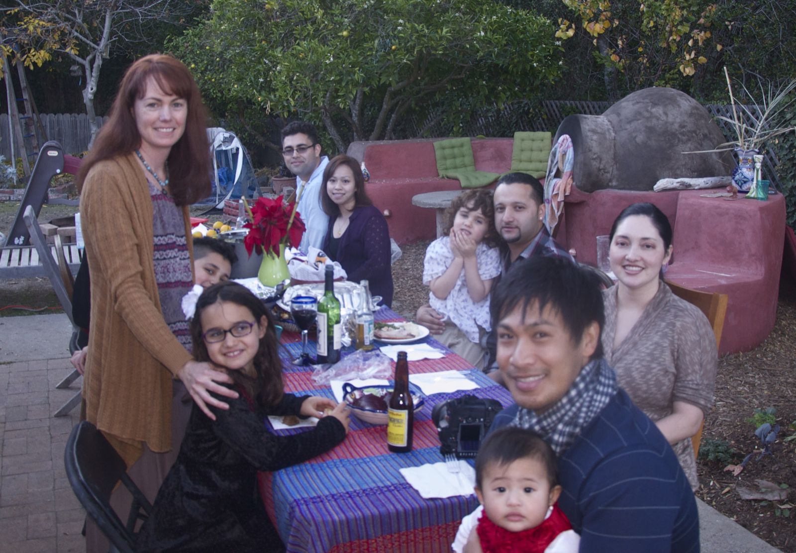 What does this have to do with ovens? Roberto Monge left El Salvador in 1980, on his 8th birthday. With his parent’s help, he grew up to claim a piece of the American Dream, getting an education and work, starting his own family, and buying a home in San Luis Obispo. But his father had always (even “before it was cool to be an urban farmerâ€) tended a backyard patch of corn, squash, and tomatoes. Roberto also remembered the dirt from El Salvador. After digging out from a flood, he recognized the same feel and color in his San Luis Obisbo backyard, and decided to introduce his kids to a part of their heritage. They started making adobes. Then he remembered the food, which had been baked in a wood-fired mud oven. They built a mini-oven. They got help and friends, and built a full-sized oven.