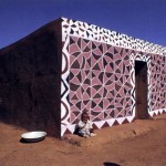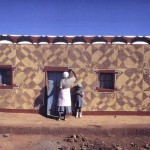 For the women of Basutholand, such murals hold a central place in a long-standing spiritual tradition. Home, and the spaces around it, make sacred vessels that contain and nurture us the way a mother’s dark, enclosing womb nurtures her child. The murals tell a story about how human culture marks the land. In the Basutho language, you don’t say a people are civilized, you say that their land “has lines on it’s face” – that it shows the marks and patterns of working humans who claim their place to satisfy their needs. As the earth answers our work and washes away our marks in an annual cycle of rain and wind, so does it wash away the murals, the making of which becomes an annual rite of renewal and re-connection.