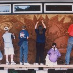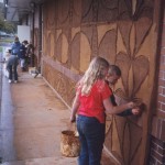 The second problem is that art creates storage and maintenance problems. The substantial physical products of student work either have to be small enough for students to take home, or “good” enough to warrant a permanent spot on a wall and a long-term allowance in the annual maintenance budget. But it’s easy to convince most people that murals made of mud will be not only beautiful, but also impermanent, easy to “wash away,” and low-maintenance. Experience proves these to be true. The murals age well. The more exposed ones wear away slowly under the action of wind and rain or little fingernails, until it’s time to wash them away – and then they’re simply gone.