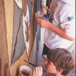 The Basutho example not only offered a unifying theme that avoided divisive questions about “teaching religion in schools,” it also offered potential solutions to two other problems with making art in schools. The first one revolves around the tenuous place of the arts in school curriculae. By treating them as ancillary to reading, math, and science, schools deny Aristotle’s truth that “what we learn to do, we learn by doing.” Murals and other large-scale art projects, however, focus the entire community on a theme common to all, and provide a golden opportunity to crystallize individual lessons by shaping them into a shared story.